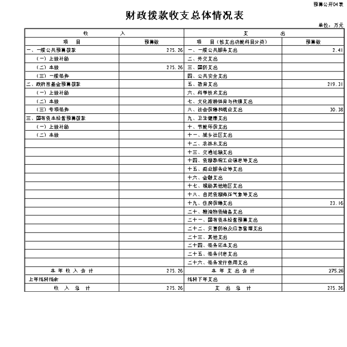 我部门总收入275.26万元,较上年增长1.57万元,增长0.57%,主要原因是人员增资。部门收入包括:一般公共预算收入275.26万元。
