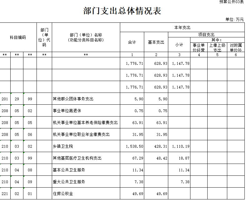 第四部分:川山镇中心卫生院2025年部门预算报表